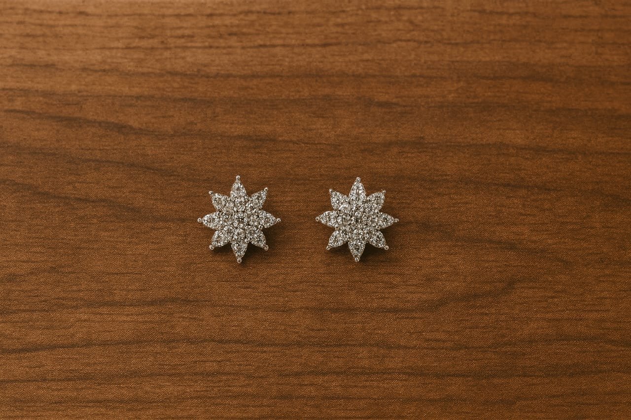 Enhance your style with these beautifully designed silver-tone CZ stud earrings. Featuring an intricate floral pattern embedded with sparkling cubic zirconia stones, these earrings deliver a graceful shine and a premium look. The detailed craftsmanship makes them perfect for both everyday elegance and special occasions.