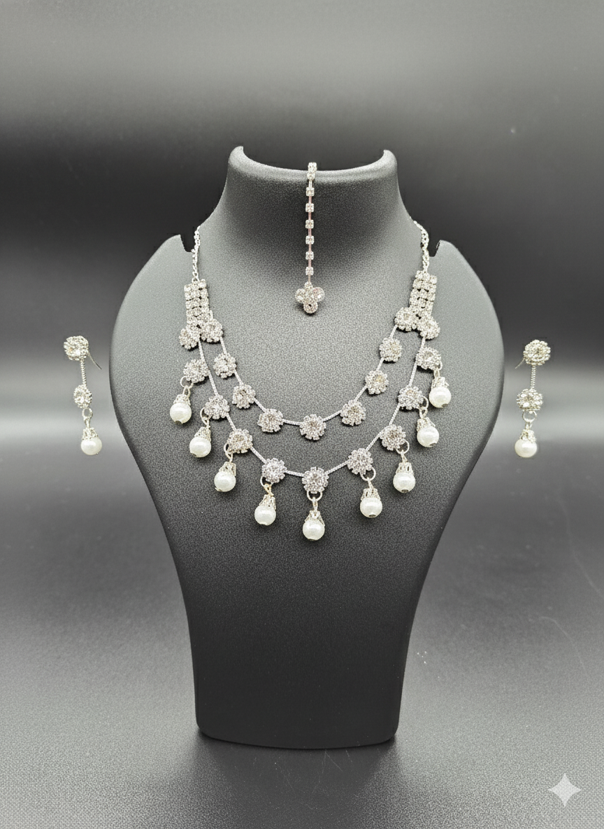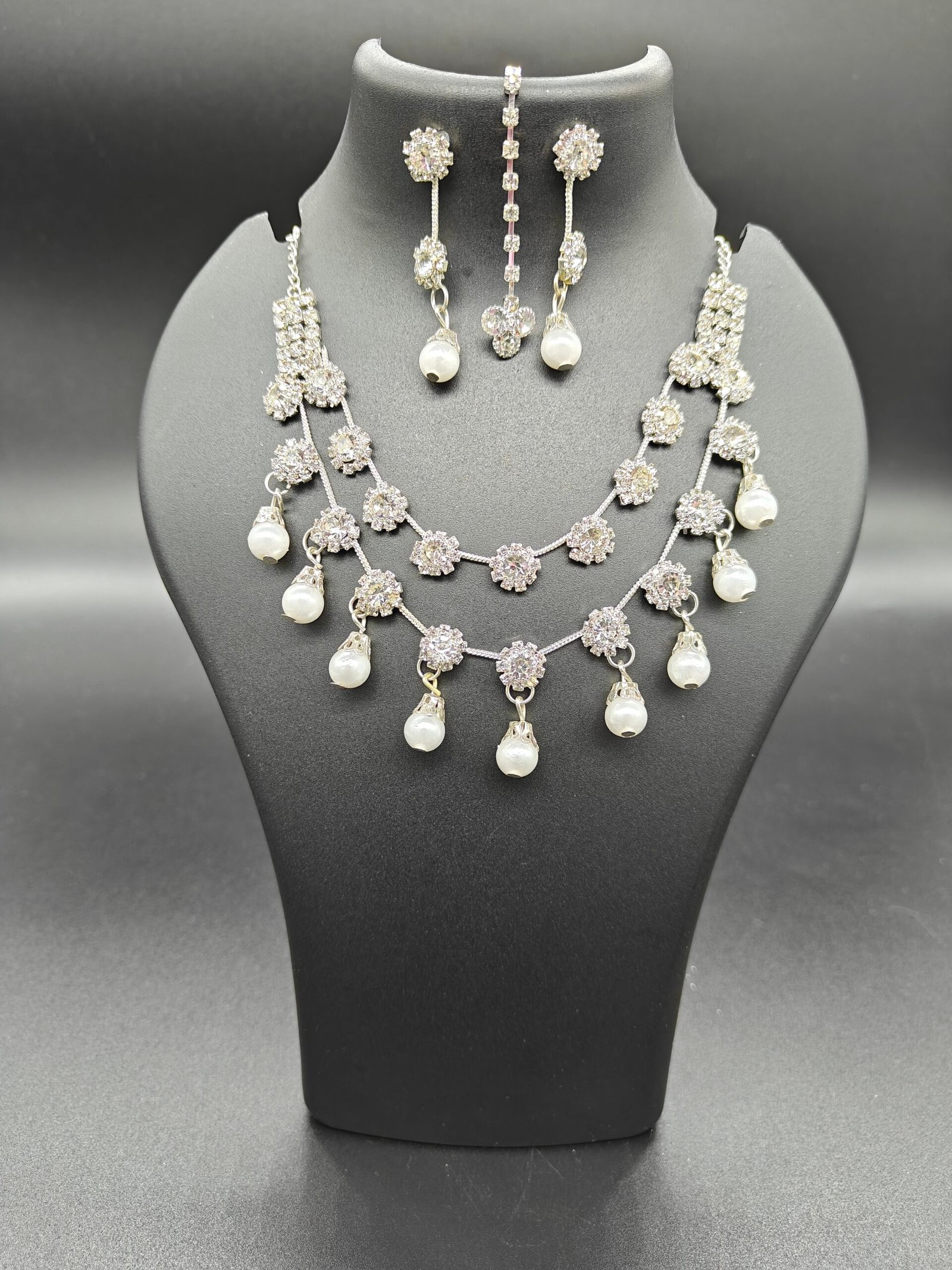 Crystal Floral Drop Jewellery Set with Maang Tikka