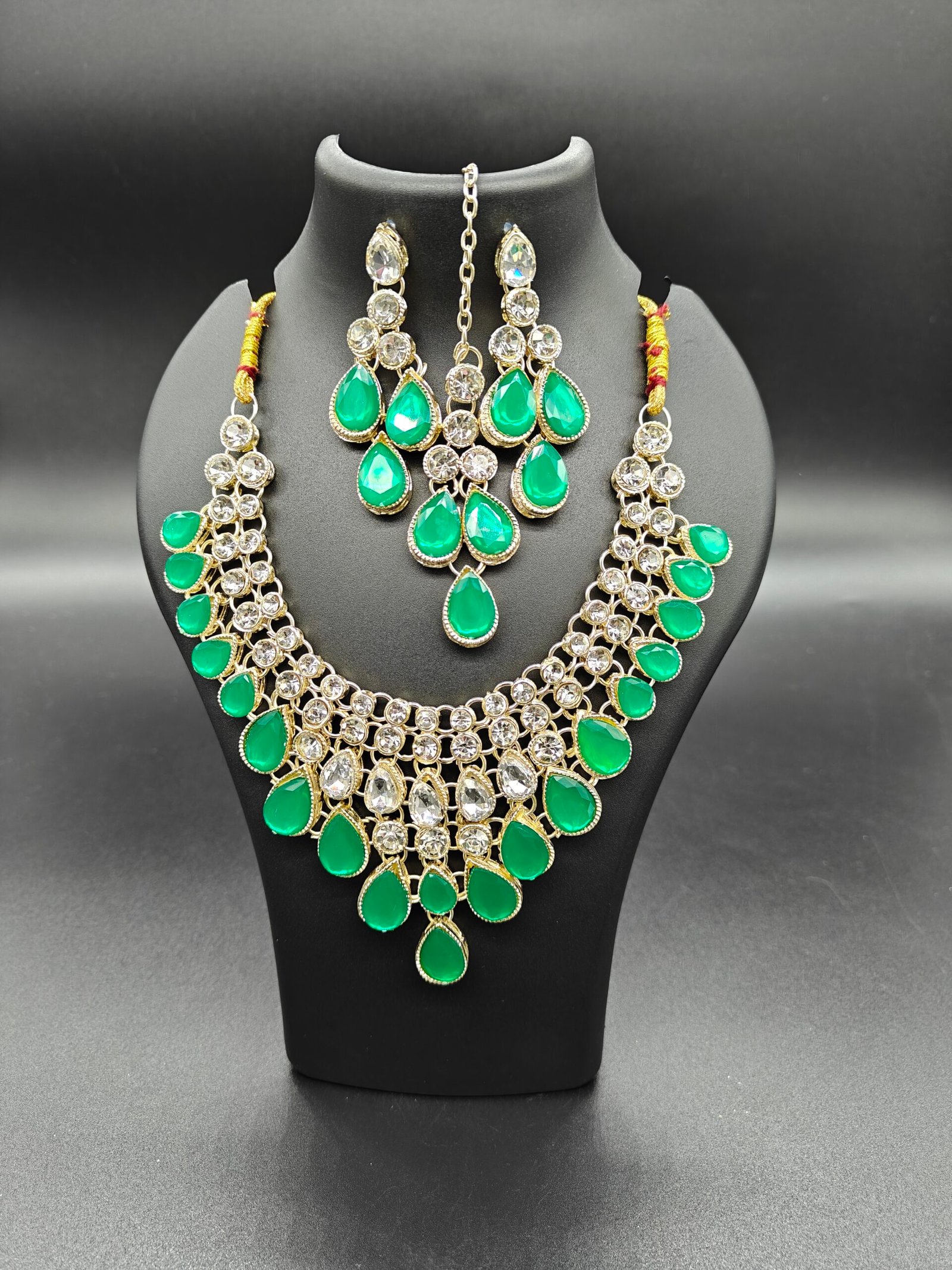 Imitation Blue Diamond/Sapphire Line Jewellery Set