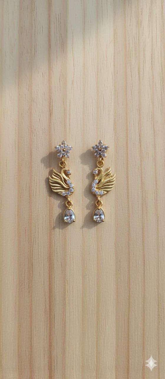 Add a touch of elegance and charm to your jewellery collection with these stunning gold-tone swan-design drop earrings. Beautifully crafted with sparkling cubic zirconia stones, the graceful swan motif symbolizes beauty and sophistication. The delicate drop stone at the bottom adds a refined sparkle, making these earrings truly eye-catching.