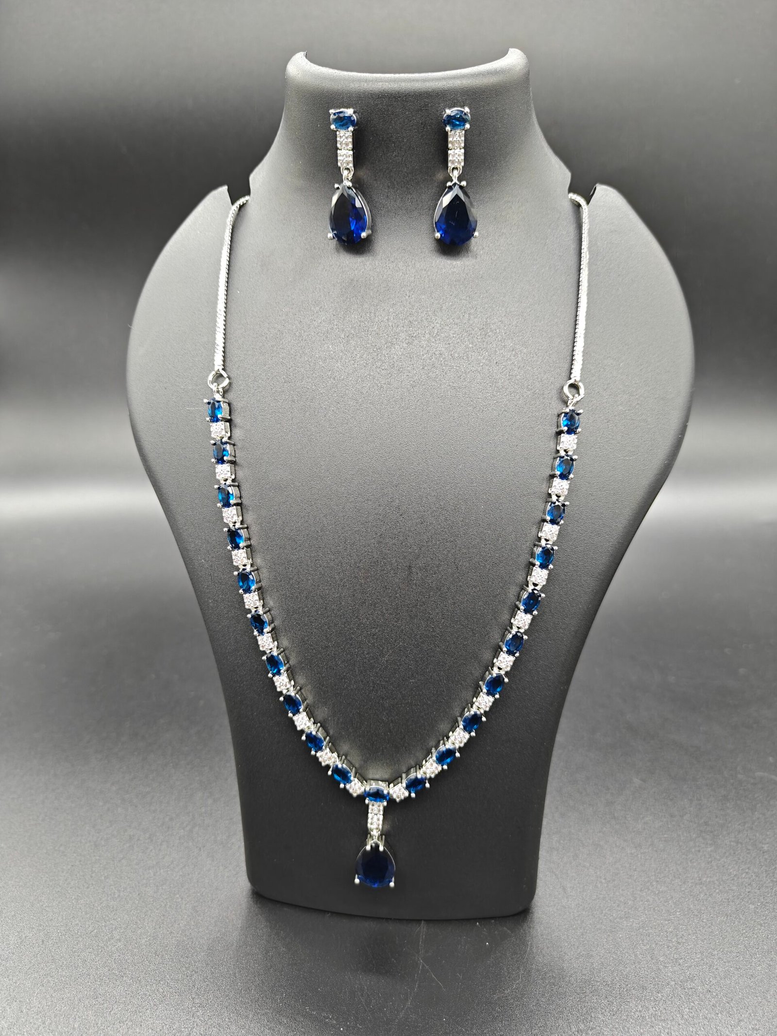 Imitation Blue Diamond/Sapphire Line Jewellery Set