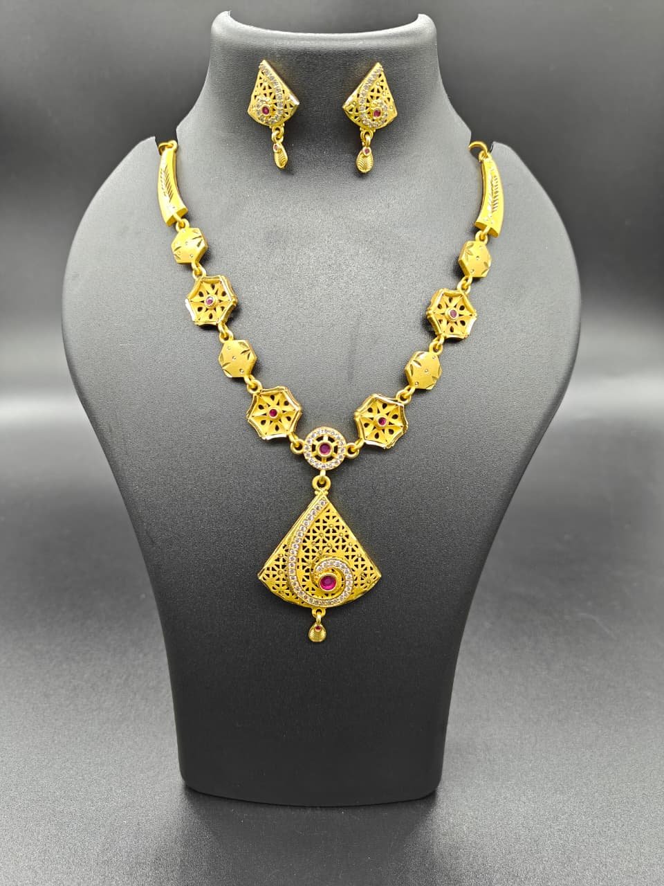 Ruby and American Diamond Necklace Set