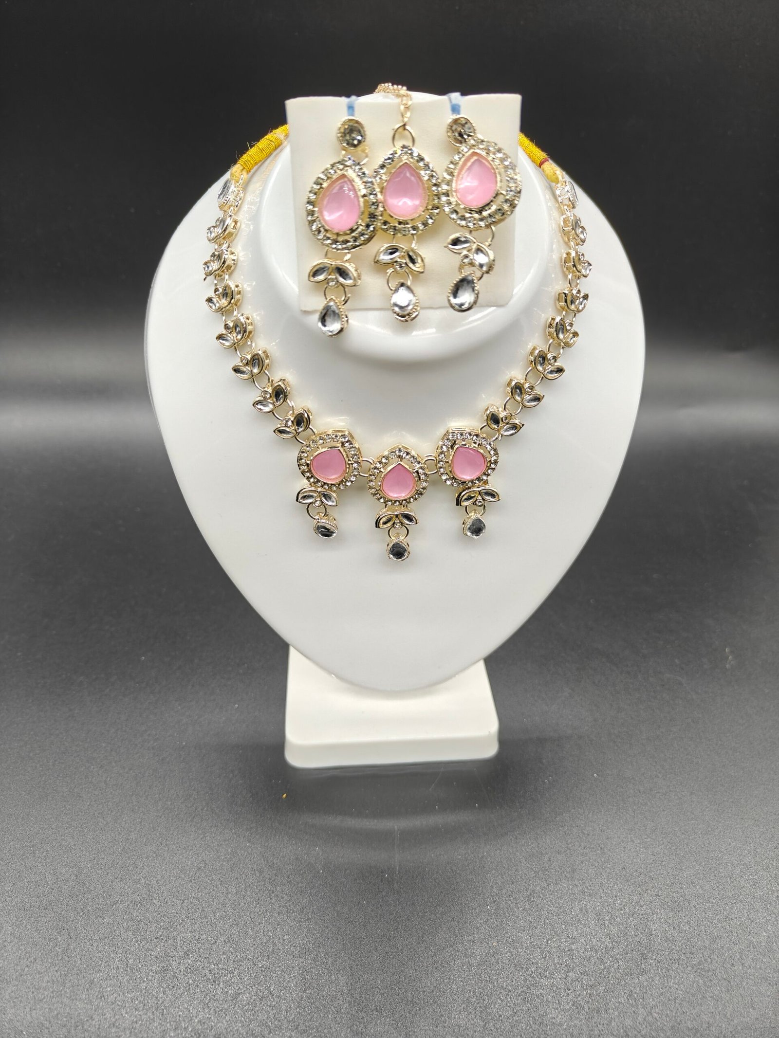 • Matching Components: The set includes a pair of dangle earrings and a matching single drop piece, which is likely a Maang Tikka (a traditional forehead ornament).